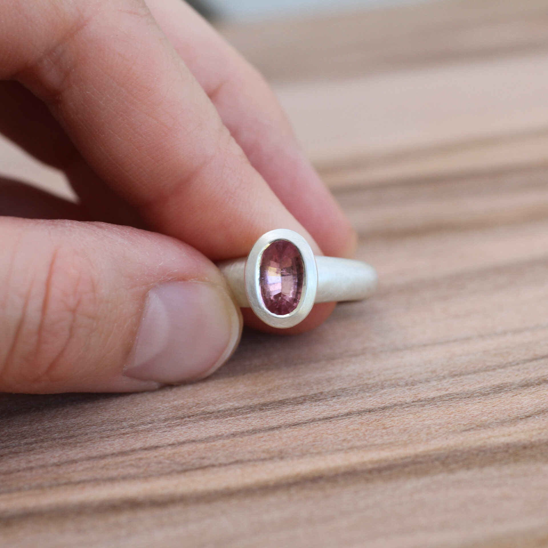Handgemachter Ring aus Sterlingsilber mit rosafarbenem Turmalin